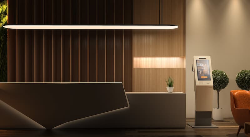 - Hotels are choosing these self-service terminals to fulfil their guests’ check-ins and outs needs.